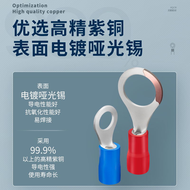 Red copper tinned cold pressed wiring terminal RV5 5 soft core wire joint terminal round copper wire nose wiring ear