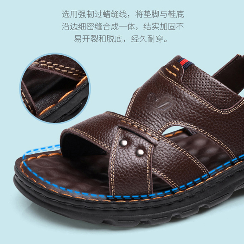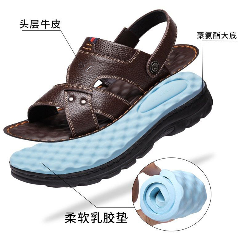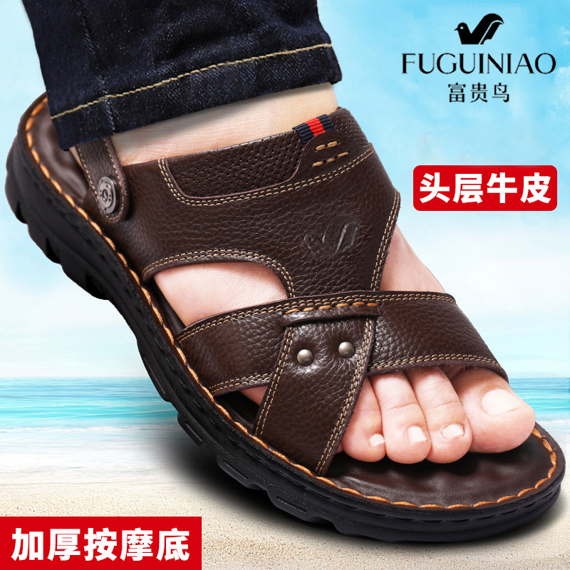 Rich bird men's shoes leather in 2022 new summer outside wearing soft - sole daddy shoes men out of the beach shoes
