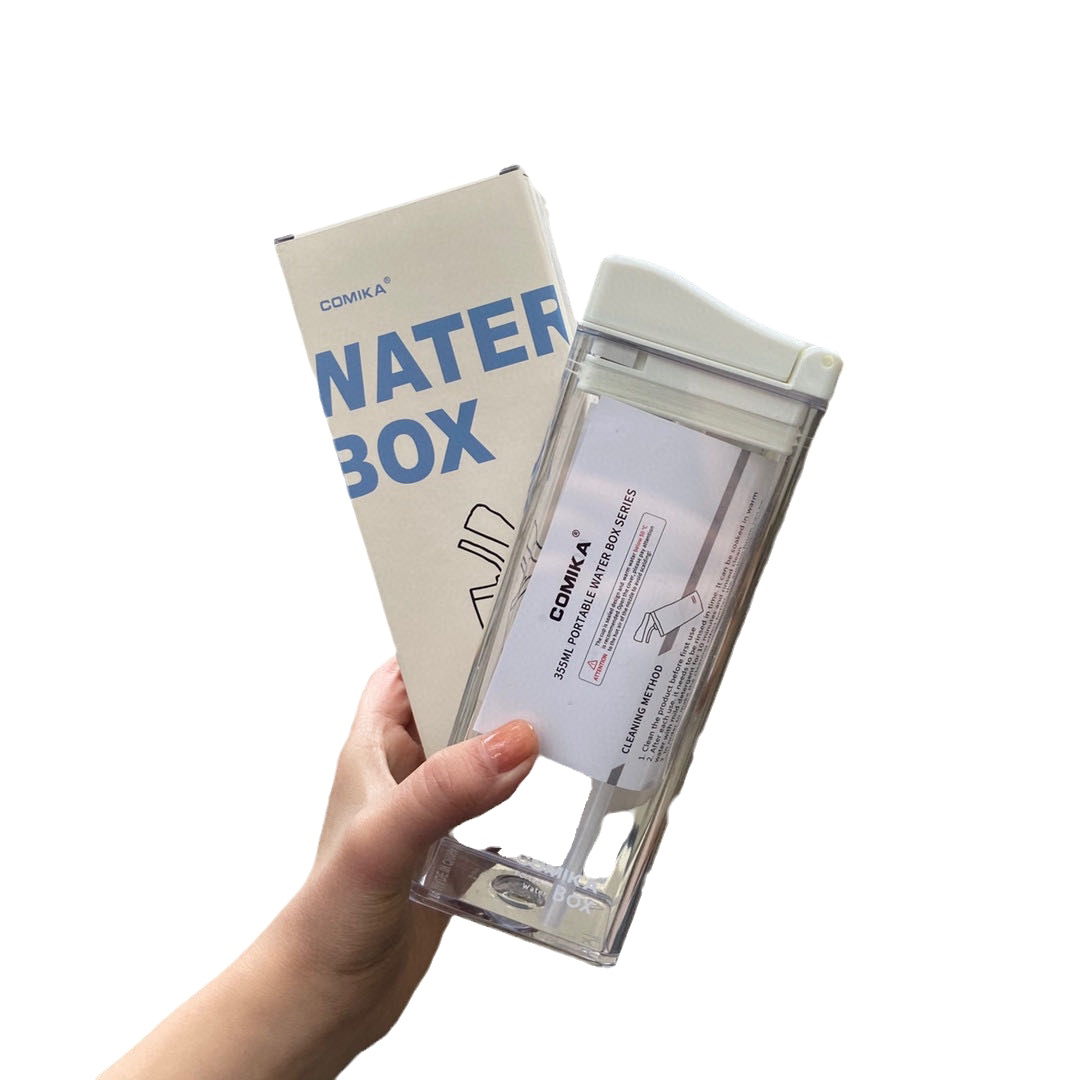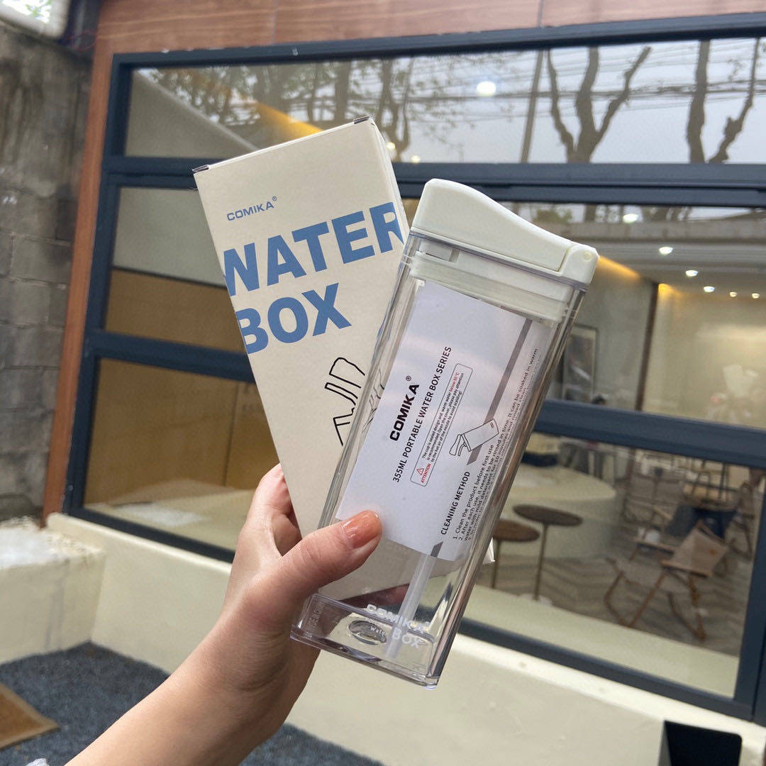comika summer accompanying water cup portable plastic transparent lid simple straw cup square box cup small fresh outdoor