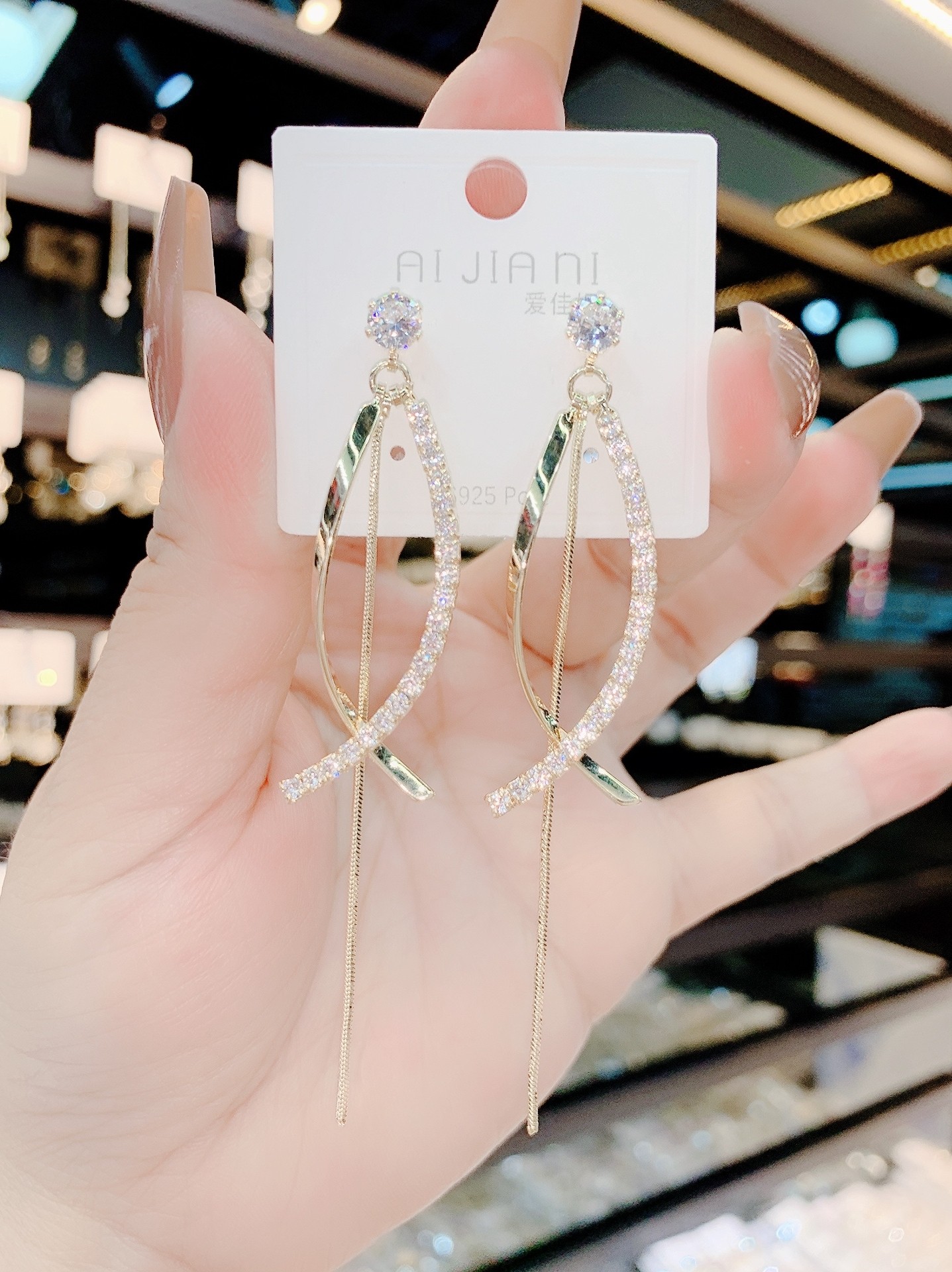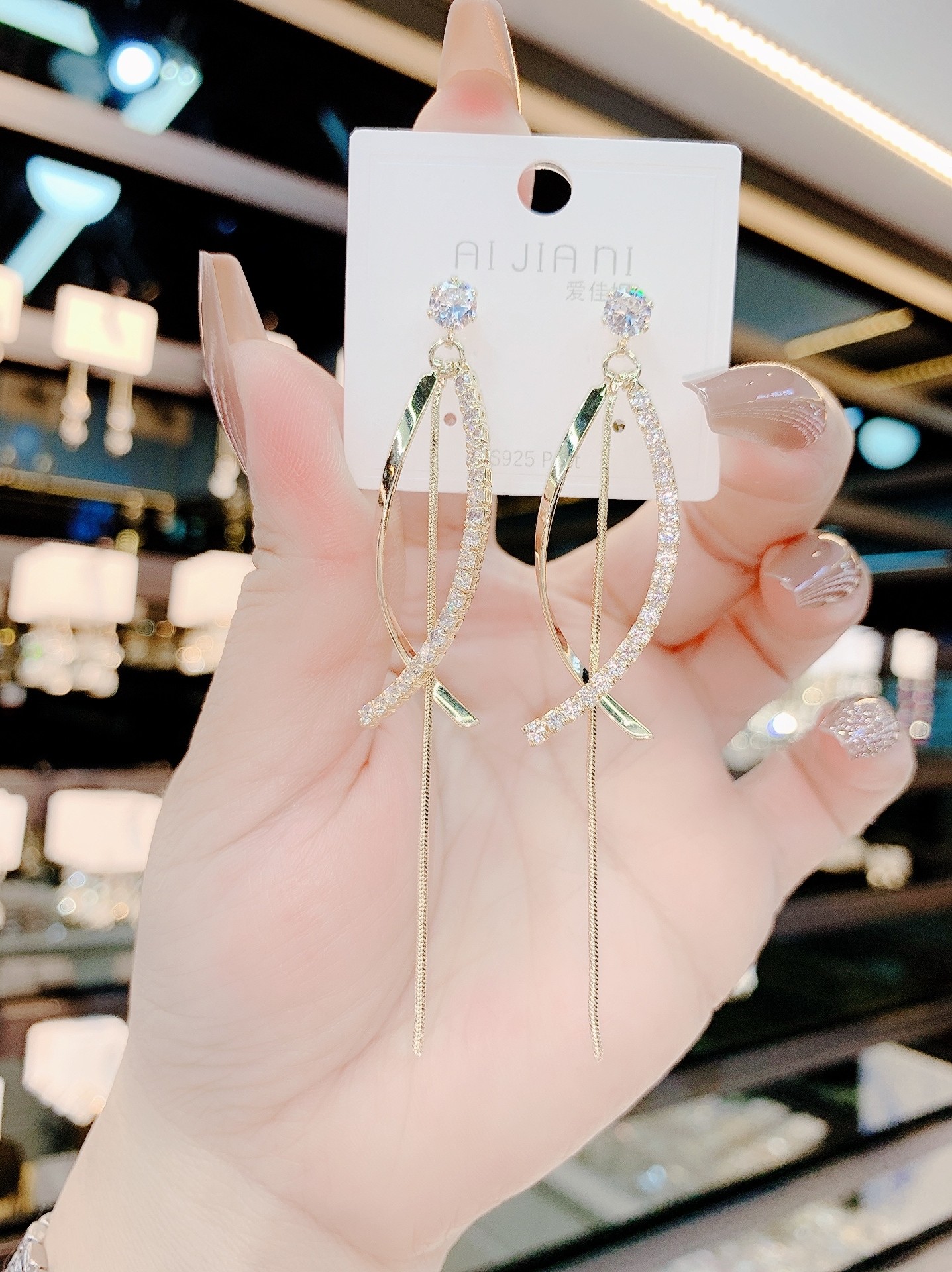 Dongdamen flash diamond micro-encrusted zircon silver needle earrings female 2022 new long version tassel personality fashion all-match earrings