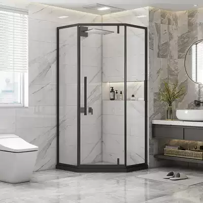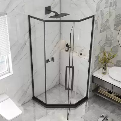 Bathroom bath shower room powder room dry and wet separation partition glass door diamond type simple household bath screen flat open