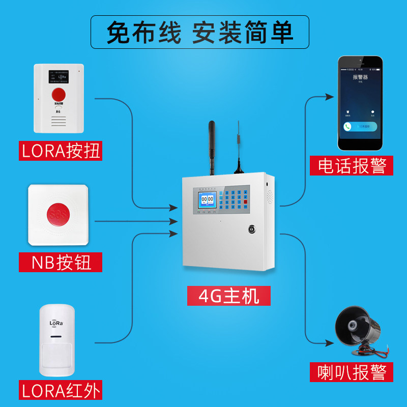 Hospital one-click alarm mall wireless emergency button security system LoRa remote infrared water level sensing