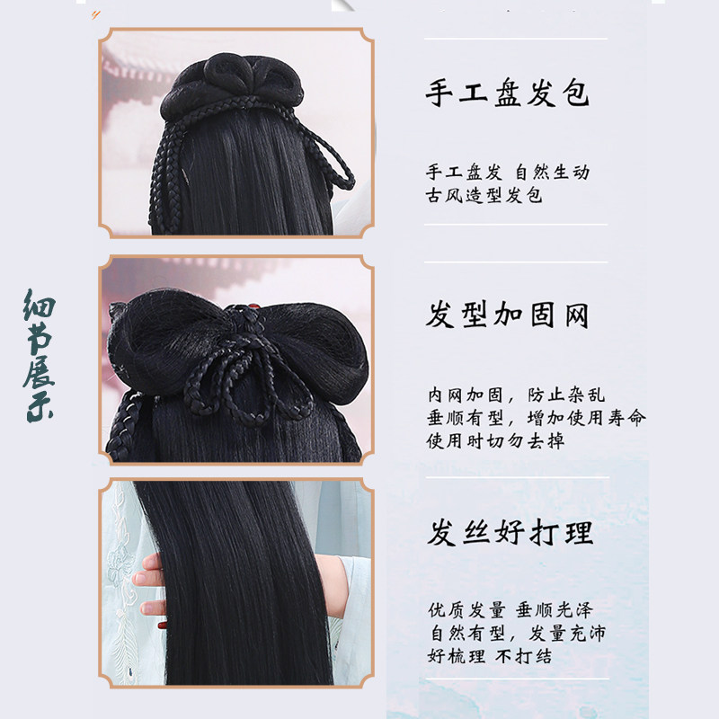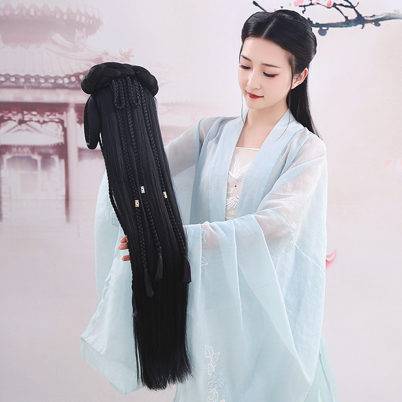 Hanfu wig integrated ancient wind hair hoop hair bun bright female lazy hand disabled party ancient costume shape Joker full head cover