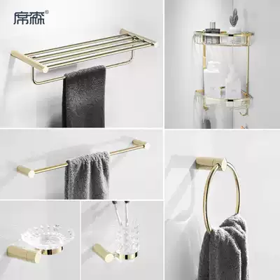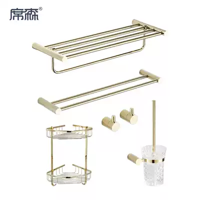 Xisen bathroom minimalist golden towel rack full copper dressing room high-grade hardware pendant punch holder set