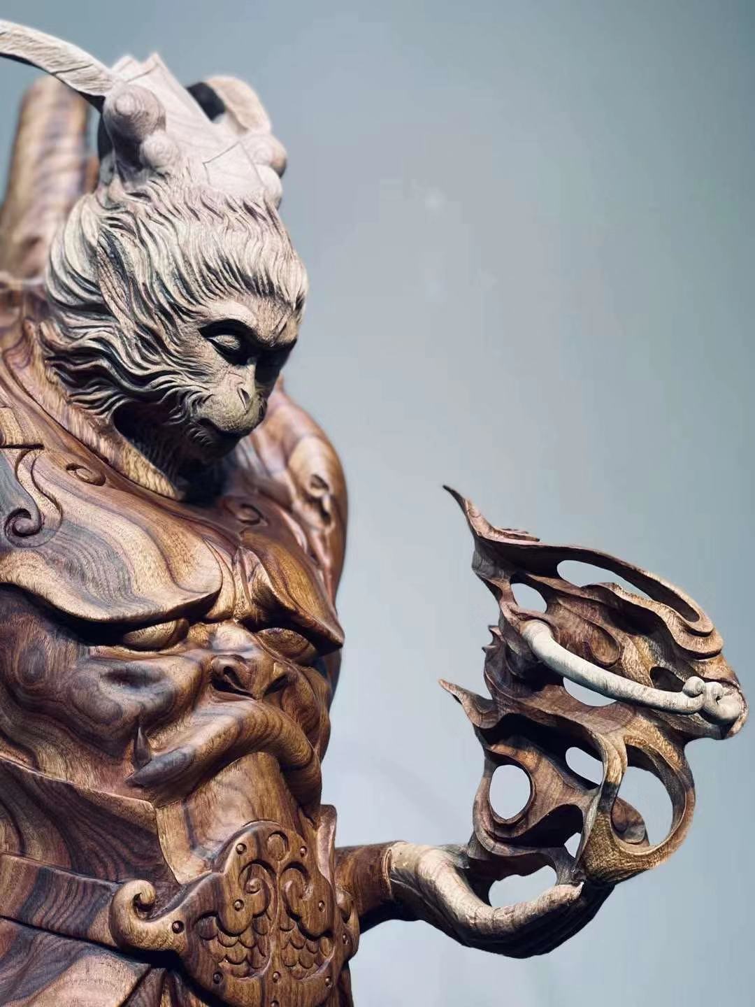 Sun Wukong root carving cliff cypress wood carving craft gift decoration Qi Tian Sheng Ebony fighting Buddha carving character log ornaments