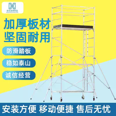 Quanzhong light aluminum alloy double wide straight ladder Eagle frame pulley movable folding disassembly platform movable shelf