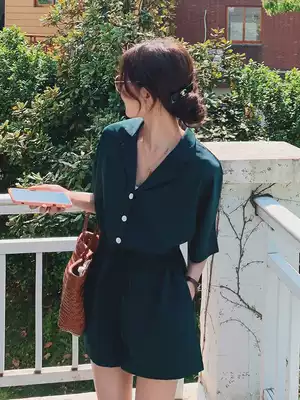 Chiffon jumpsuit women's summer new Korean thin wide leg shorts high waist slim casual temperament loose jumpsuit
