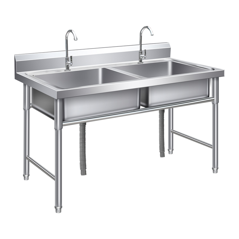 Stainless steel sink kitchen hand washing dishes washing basin with bracket sink sink single sink double sink three-slot commercial