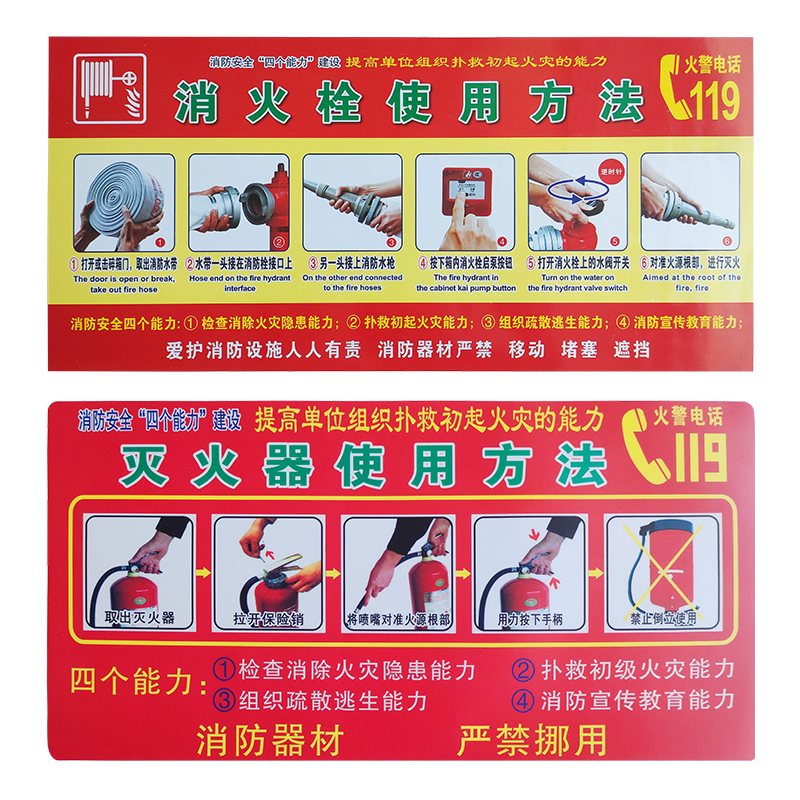 Fire hydrant extinguisher using fire-fighting night signs safety exit escape sign spontaneous light point check card