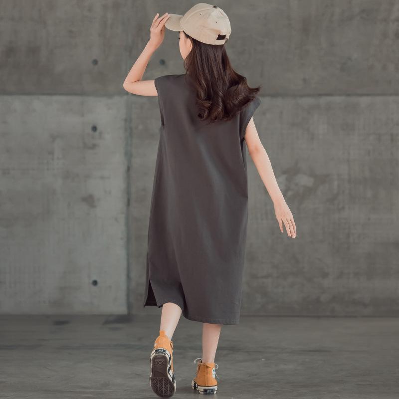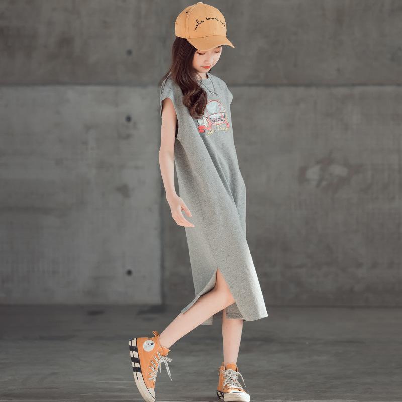 Parent-child Girl Loose Casual Long Skirt Summer CUHK Child Short Sleeve Straight Drum Skirt Child Han Version T-shirt Foreign Dress