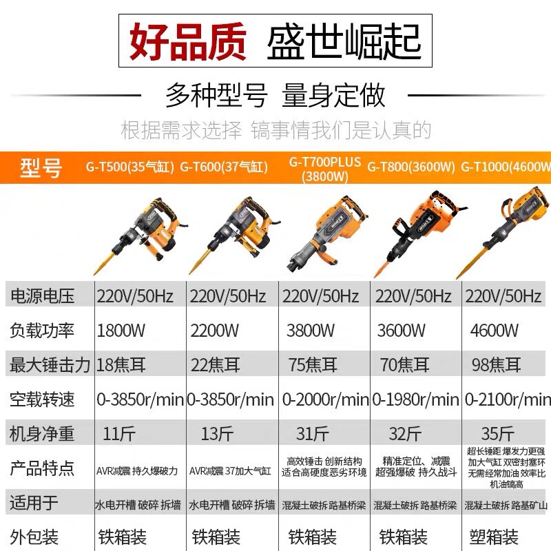 G-T450 light pick 35 cylinder 1600WG-T460 light pick anti-hot 35 cylinder 1600WG-T500 pick 35 cylinder 1800WG-T
