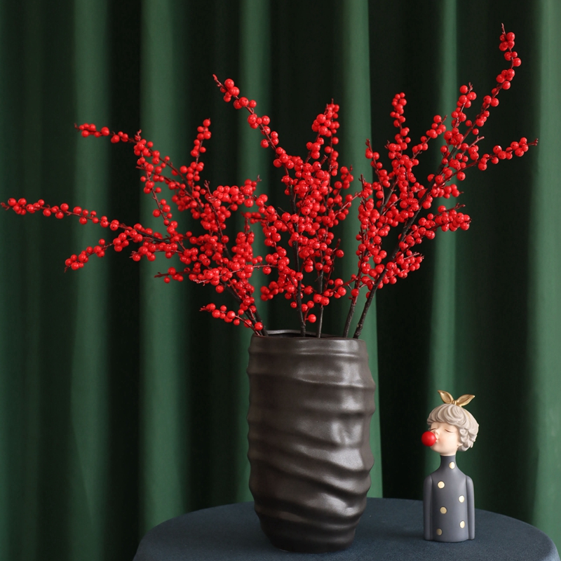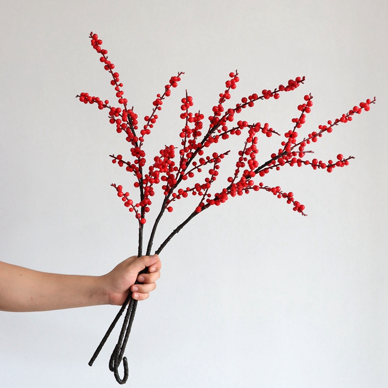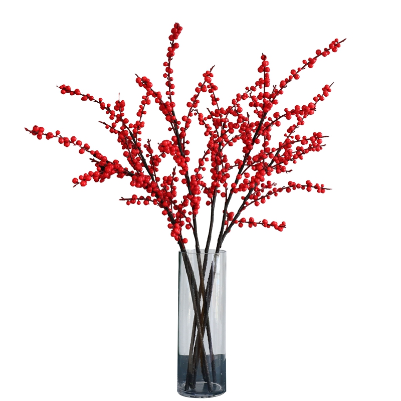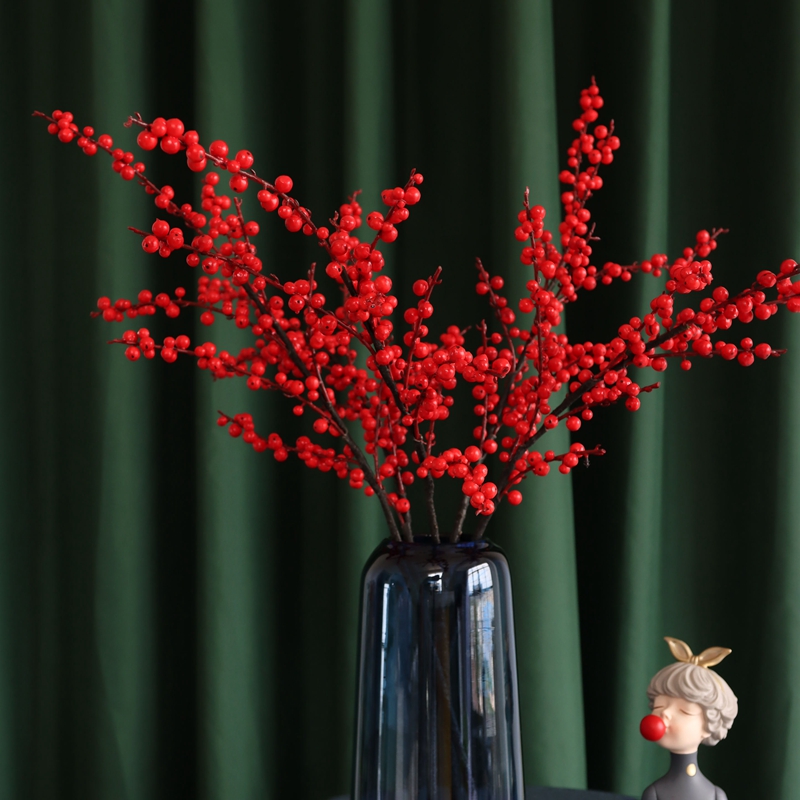 Chinese style red fake flower pendulum piece North American winter green fruit emulation upscale 2021 new living room Wedding House Decoration Hair-Taobao