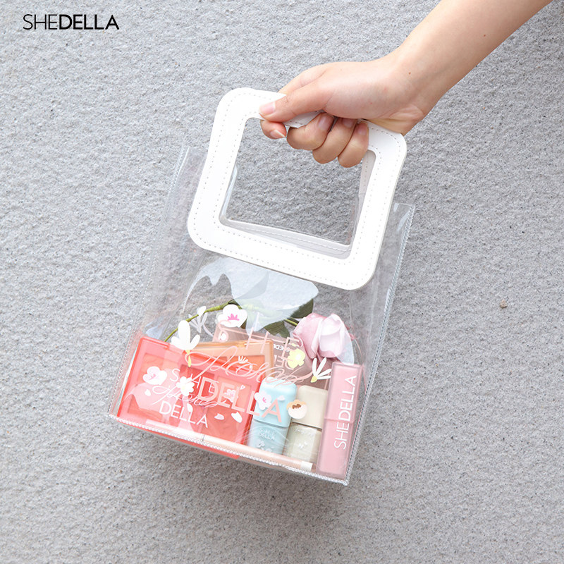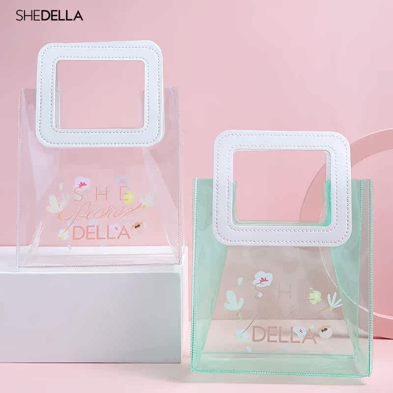 Sister Flowers Series Perimeter Handbag for Transparent Makeup Bag PVC material Texture Shopping Bag Gift Bag