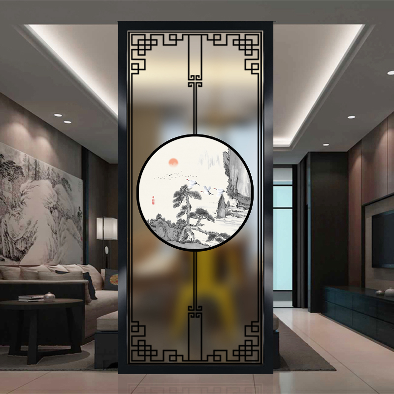 New Chinese art glass living room screen large hotel partition double-sided light transmission entrance wall custom grid