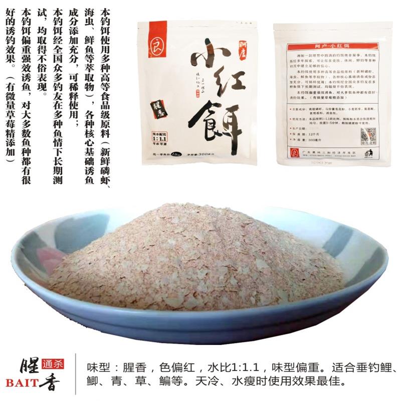 Little red bait big white crucian carp fishy 150g one pack two packs of small red bait (300g) two packs of big white gizzard (fishy) 300g two packs of big white crucian carp (Guxiang) 500g small red bait