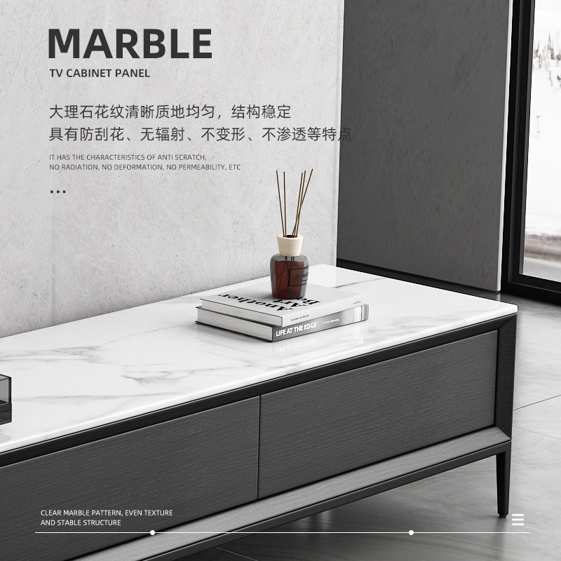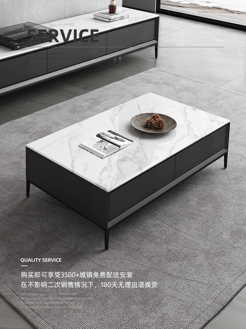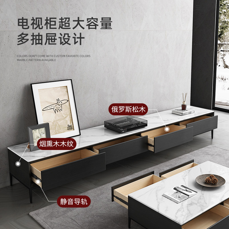 Slate TV Cabinet Coffee Table Combination Italian Light Luxury Small Apartment 2022 New Slate TV Cabinet Black Furniture