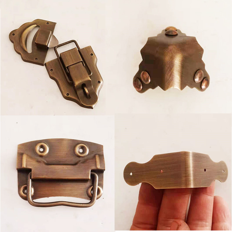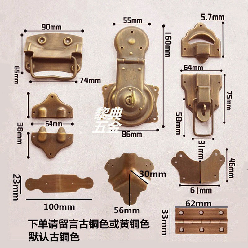 Chinese style Zhangmu box pure copper accessories brass old vintage wood box lock catch box buckle round bag corner handle hinge full set-Taobao