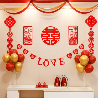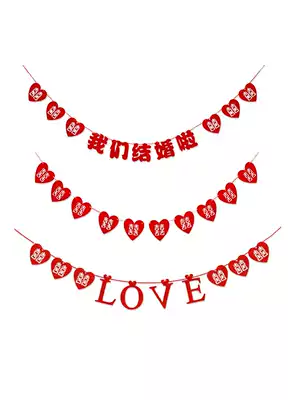 Pull the flag, we are married, living room decoration, flower love, pull rope, wedding room, decoration, wedding supplies