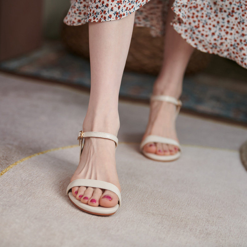 Kaky toe sandals in summer with new leather fashion in summer 2023 with a female heel shoes