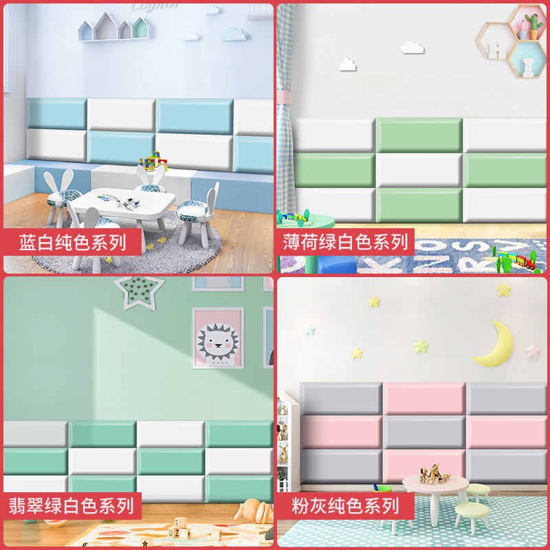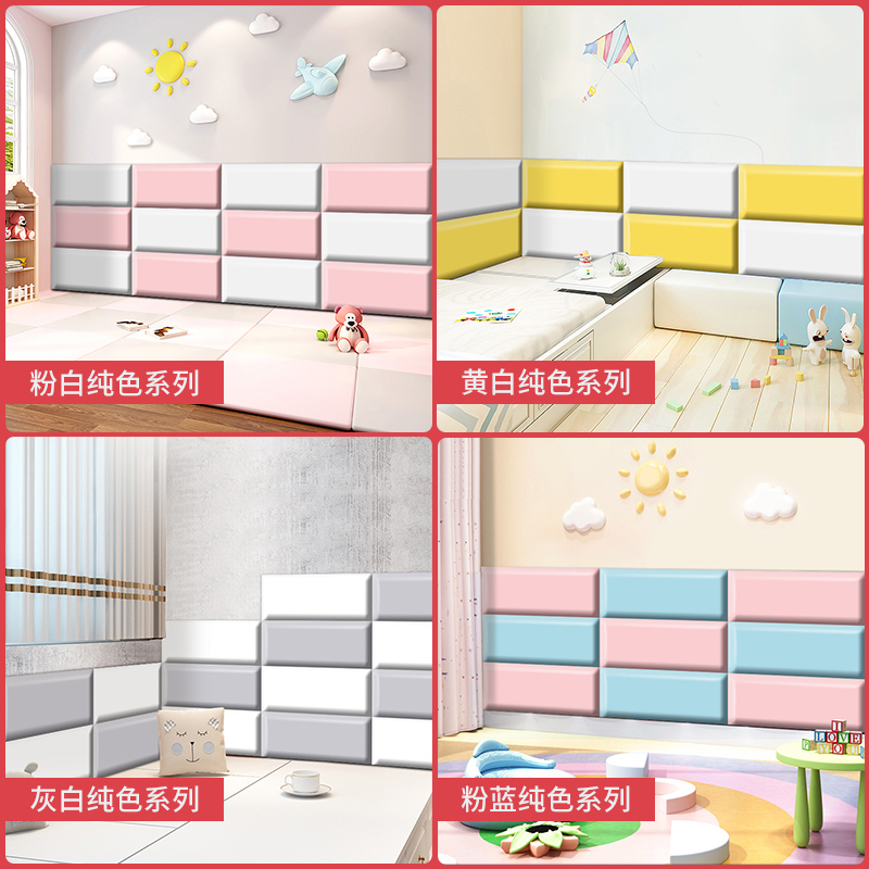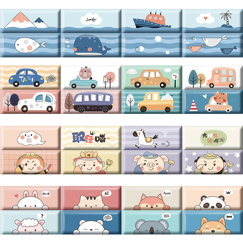 3d solid self-adhesive wall stickup baby children room cartoon anticollision wall stickers bedroom wall face decoration bedside soft bag sticker