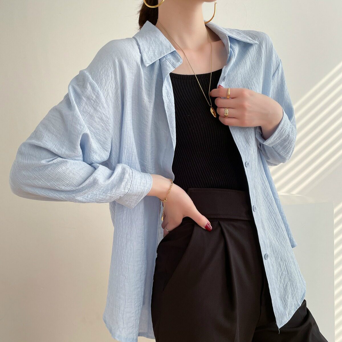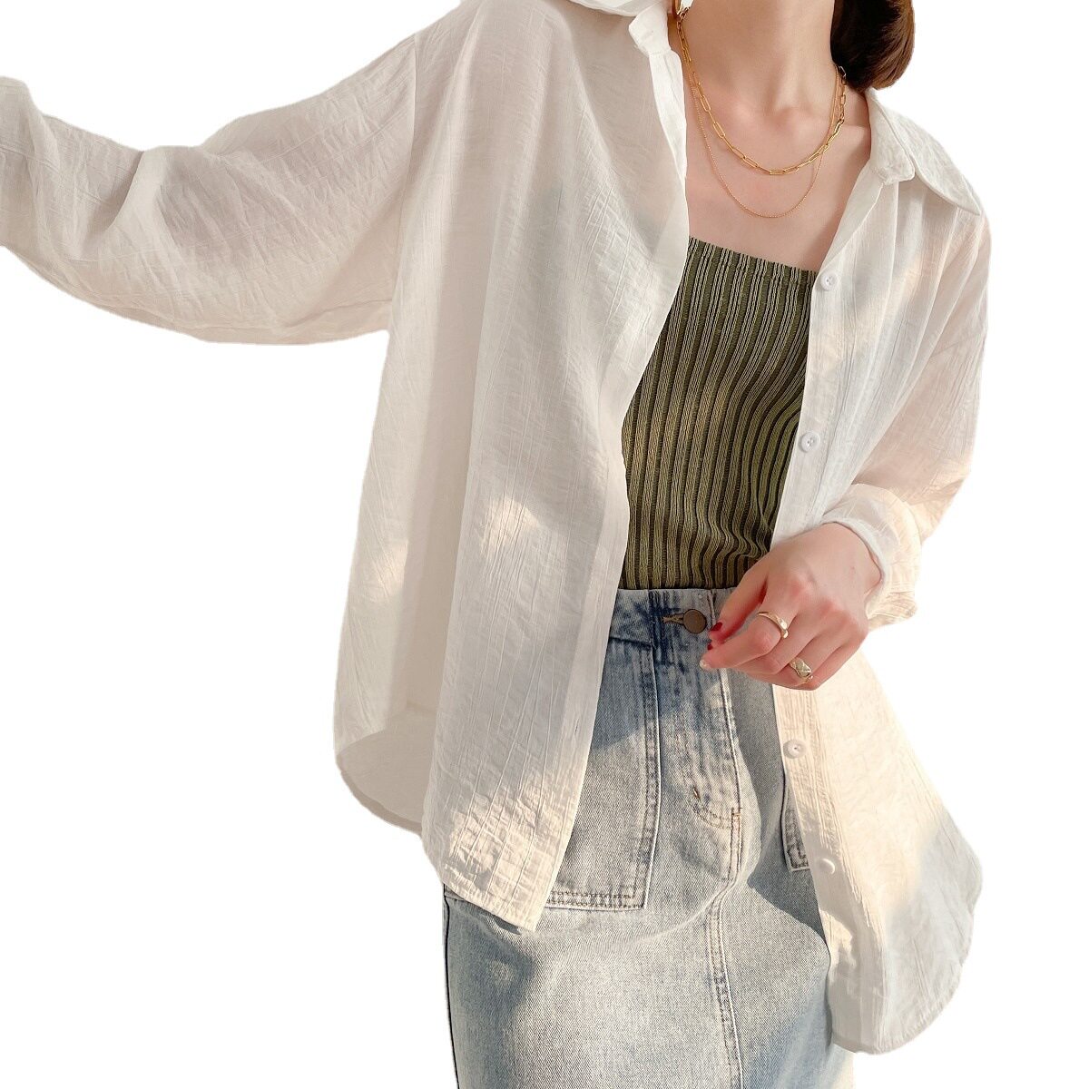 Sun shirt woman summer sleeve 2021 new Harbor design sense of the Han edition loose shirt with thin style