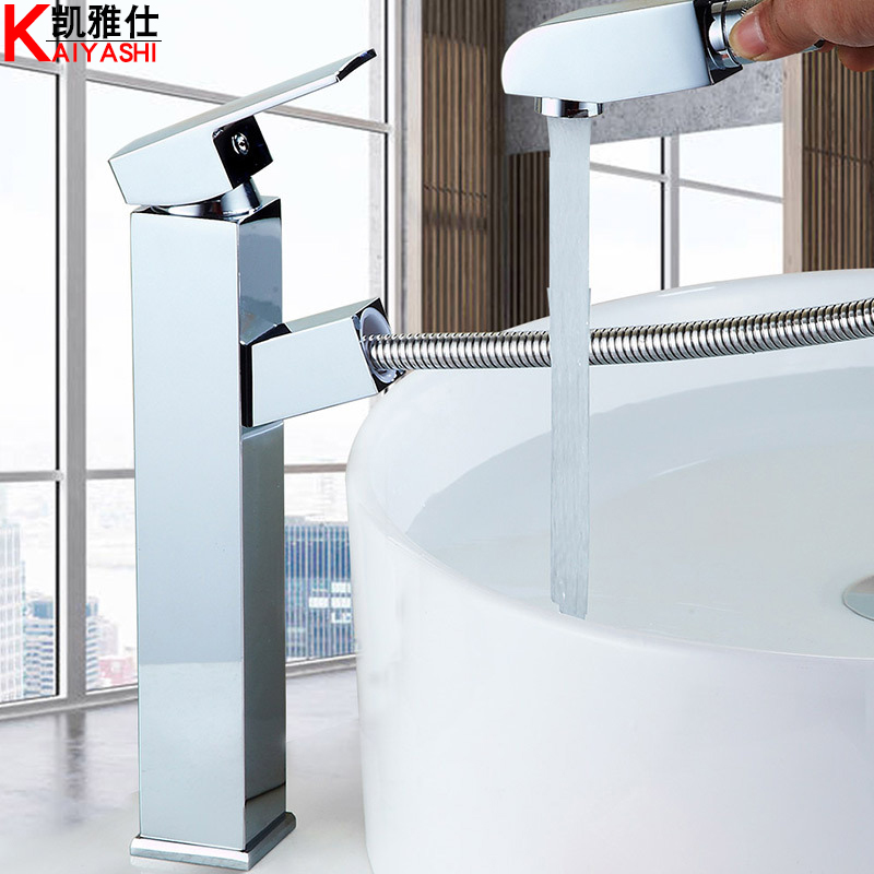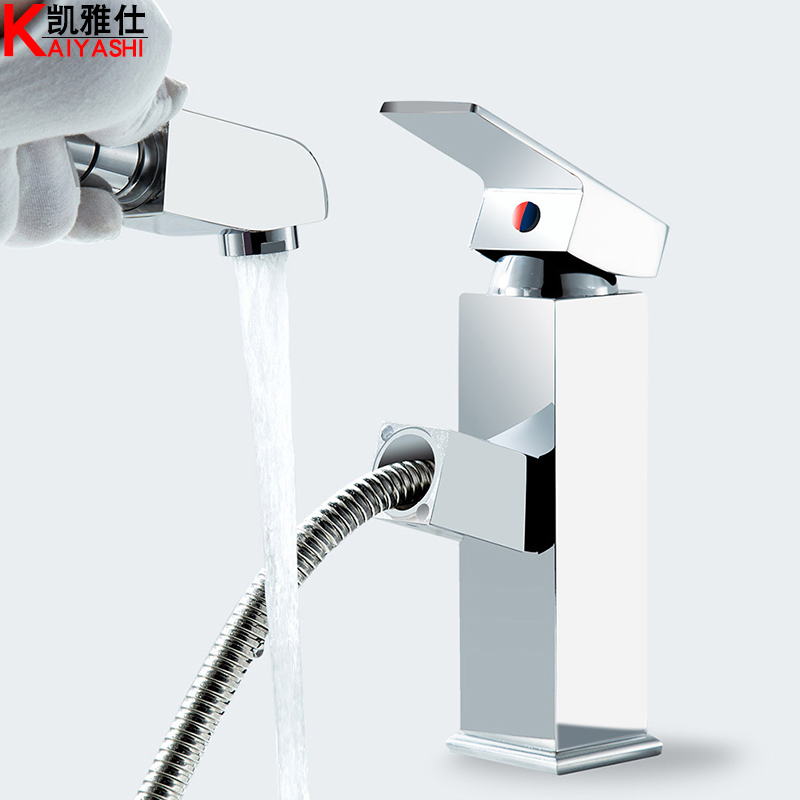 Kaiyashi all copper pull-out faucet Bathroom hot and cold washbasin basin faucet Table basin plus high section
