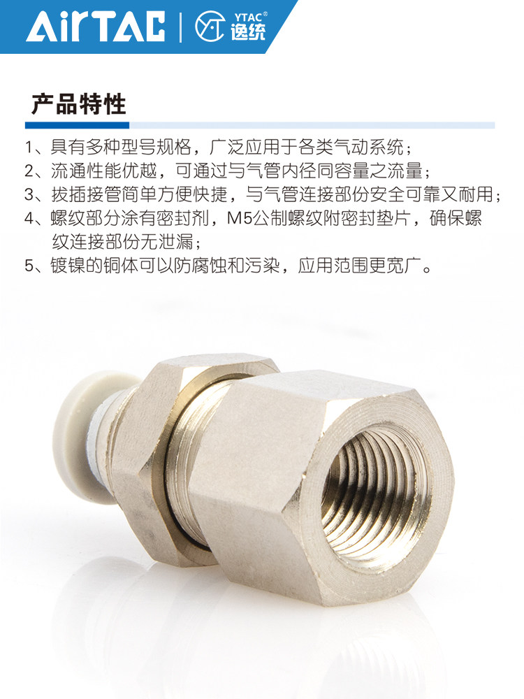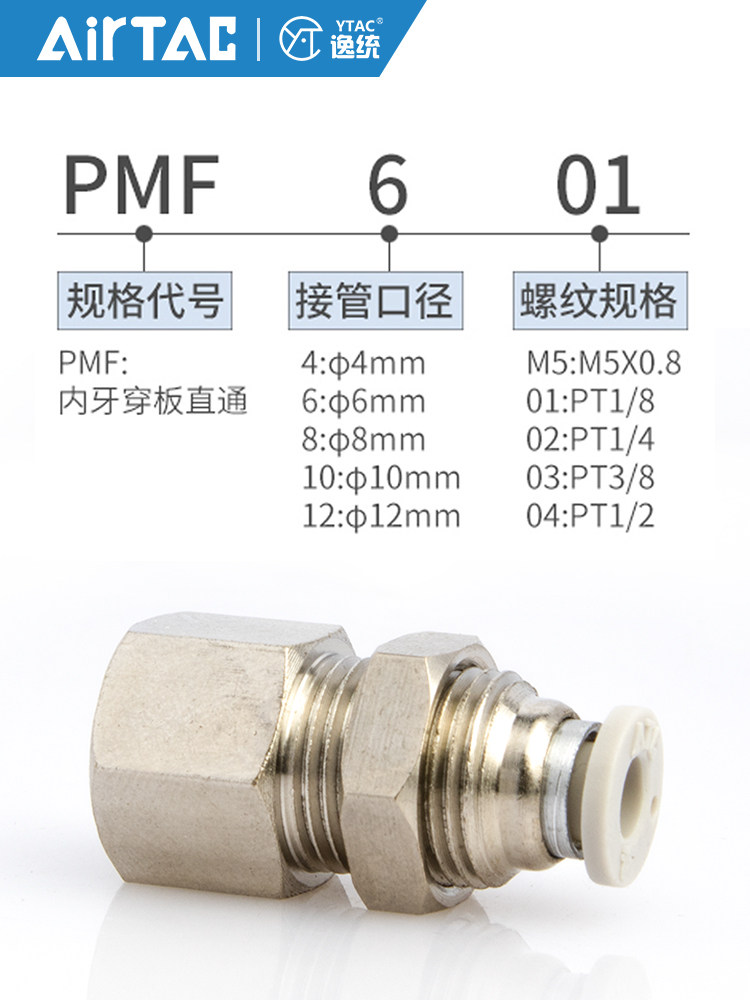 Yade polite internal thread through plate straight-through connector PMF4 6 8 10 12-M5-01-02-03-4 internal teeth