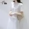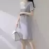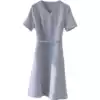 Solid color professional commuter dress women's summer new V-neck lace-up waist thin medium and long version temperament small skirt tide