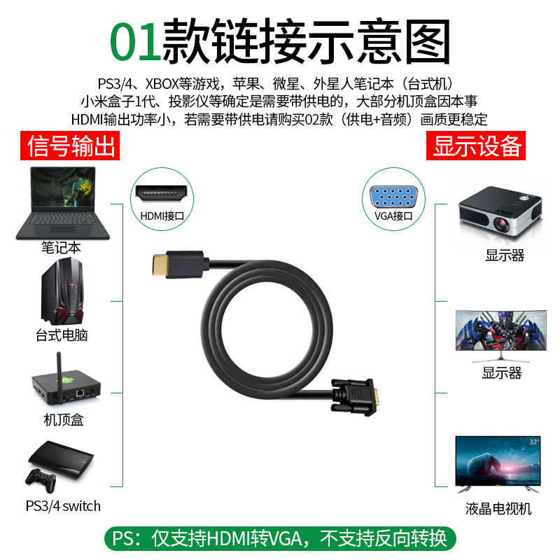 (01 model) suitable for screen with vga interface (hdmi to vga without audio and no power supply) (01 upgrade metal model) suitable for screen with vga interface (hdmi to vga
