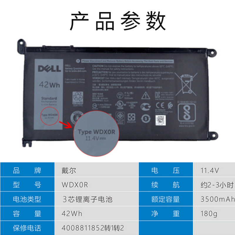 Dell Original WDX0R Laptop Battery Burn 7000 Lingyue Inspiron14 15 7460 7569 7560 7472 5565 3480 345