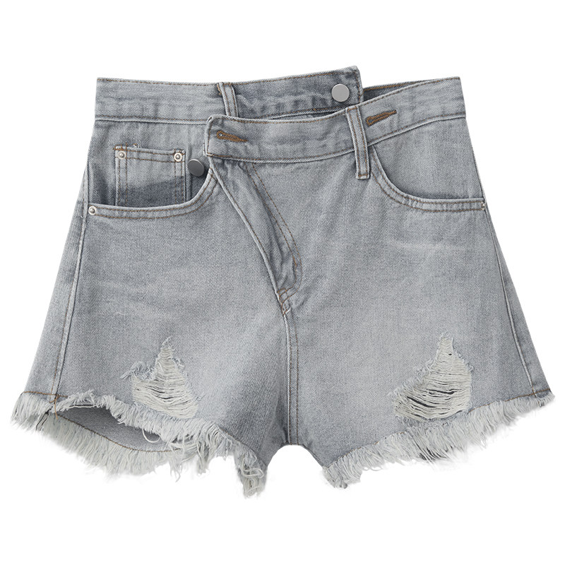 Irregular Hair Side Breaking Hole Cowboy Shorts Woman 2022 New summer thin sheet Thin High Waist A Character Hot Pants Tide