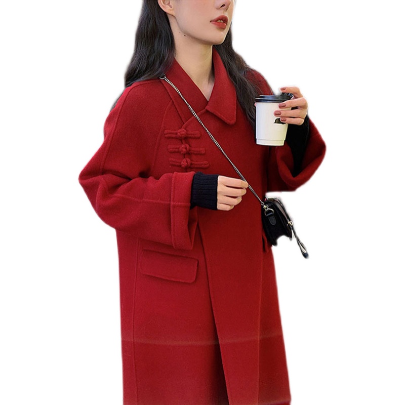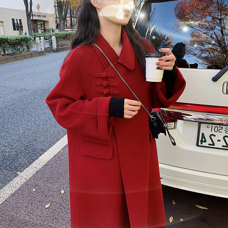 Chinese style anti-season high-end red double-sided cashmere coat women's long version 2021 new retro loose double-sided