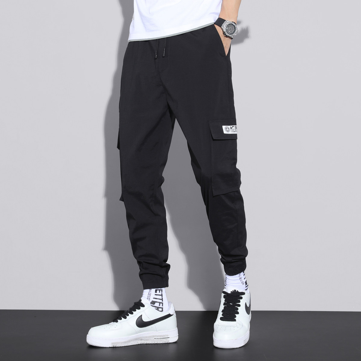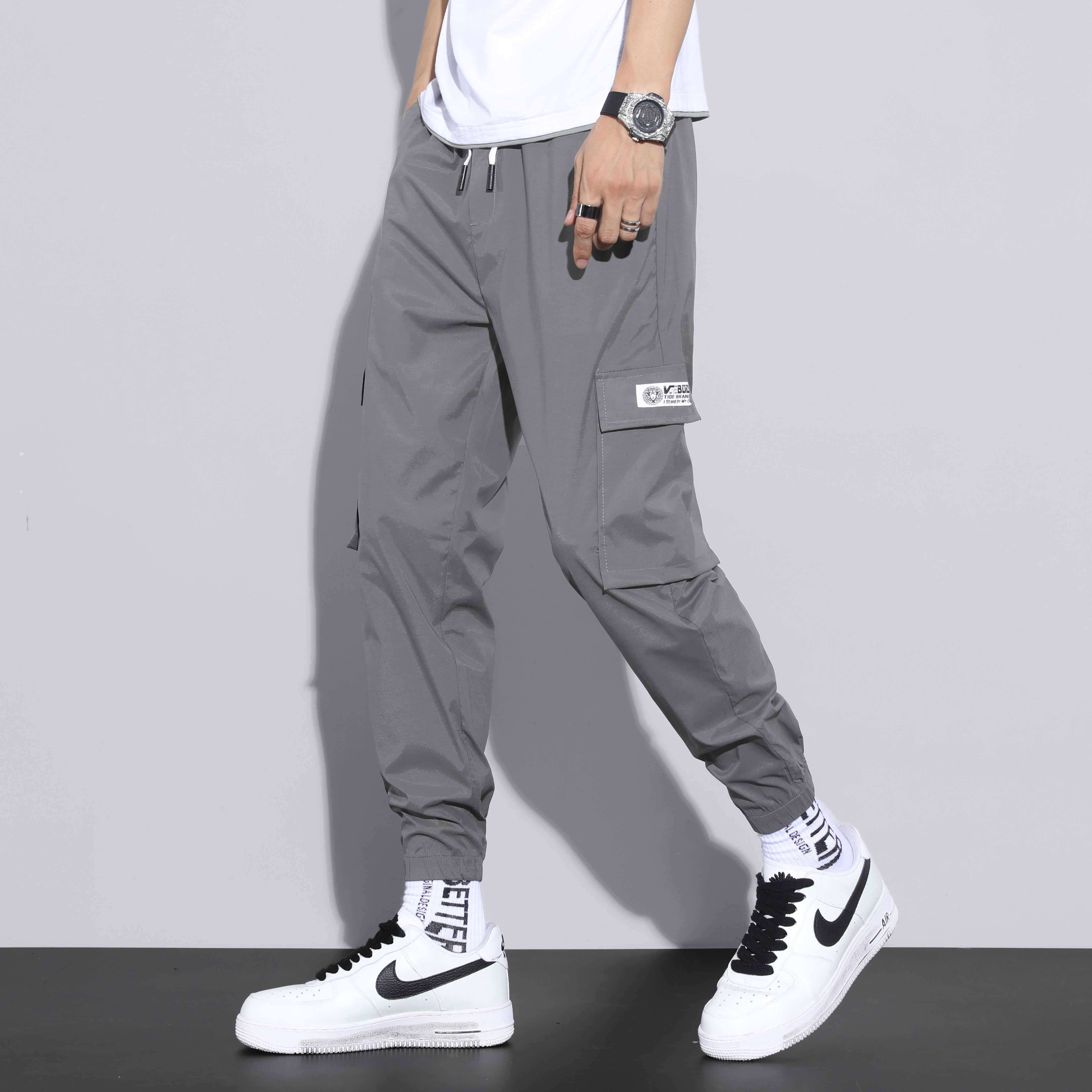 Summer ice silk thin style casual work pants men loose bunches 90% sports pants trendy tide sign ice silk long pants