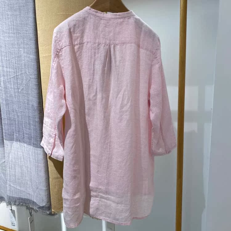 Pure hemp 788 yuan Hanp family girls shirt three-quarter sleeve pink basic summer breathable sunscreen 12339