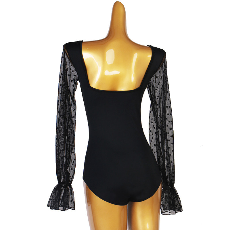 Lantern sleeve Morden dance one-piece blouse square V collar Latin dance one-piece blouse waltz with new products on the Waltz National Label dance-Taobao