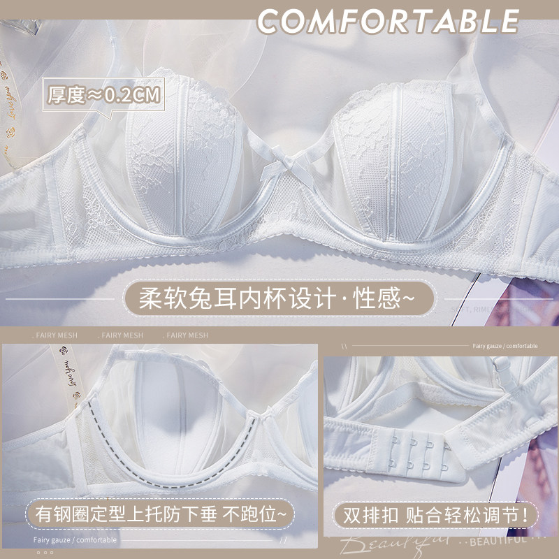 Sexy French underwear women's summer ultra-thin models gather anti-sagging confusion suit white bra cover large chest is small