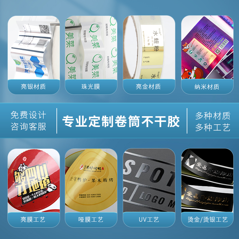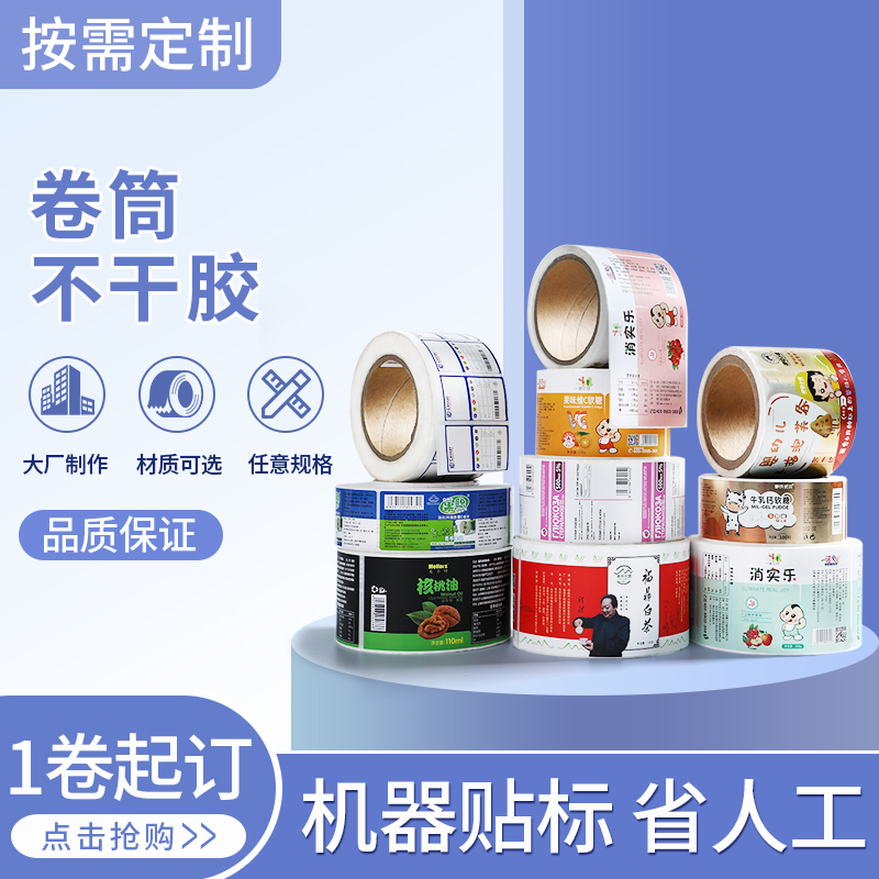 Roll adhesive sticker custom two-dimensional code label set as roll loading label printing transparent pvc waterproof logo hot gold tea Milk Tea Fruit Takeaway Seal Sticker Roll Mark Not Sticky printing