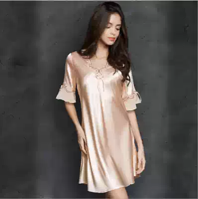 Mannifin pajamas women 2021 new sexy summer thin silk nightgown female mulberry silk senior sense spring and autumn