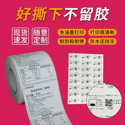 Five-proof heat-sensitive synthetic can be removed without glue, tear, waterproof label, 6040x50x80x70x90x100 food, frozen plastic packaging, easy to tear, no glue, PP synthetic paper topb