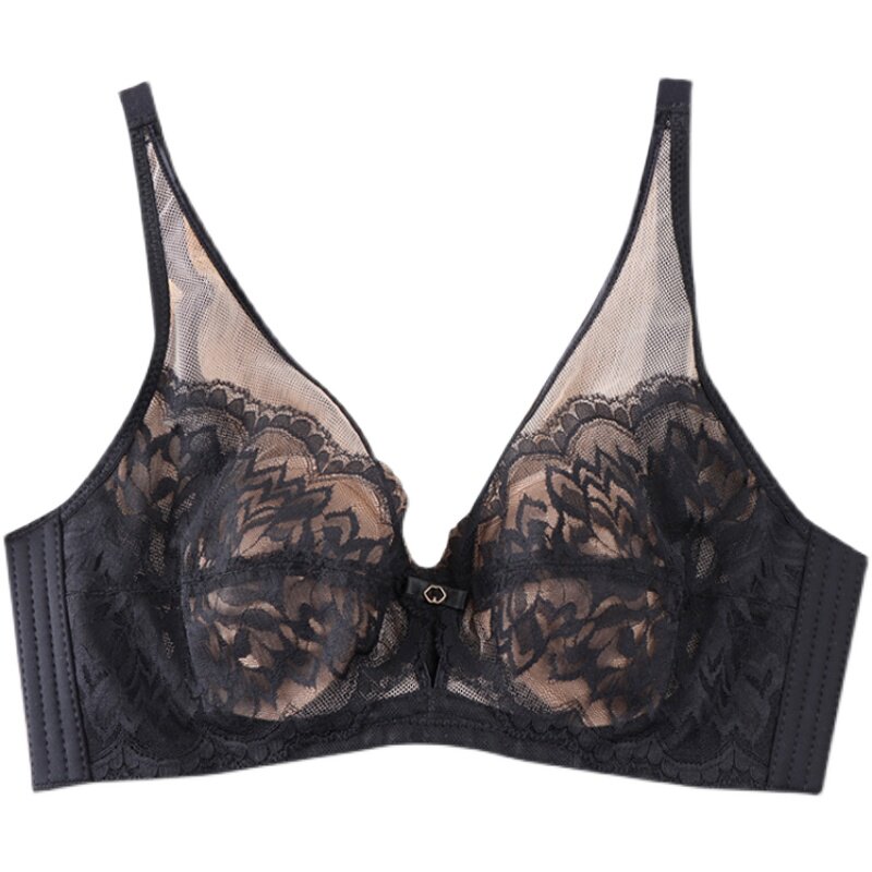 Thin bra large breasted chest display small anti-bump lace beautiful back ultra-thin underwear female soft steel ring No sponge chest cushion Summer