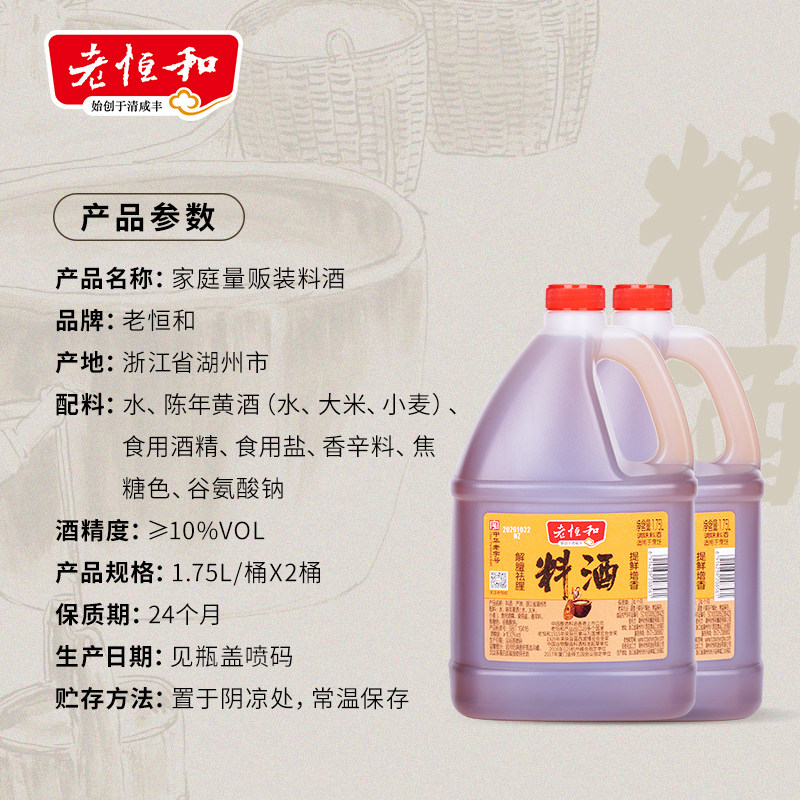 Laohenghe Family Food Wine Barrel 1 75L Relieves Shanxi, removes fishy smell, enhances freshness, cooks, stir-fries, steams, cooks and seasons