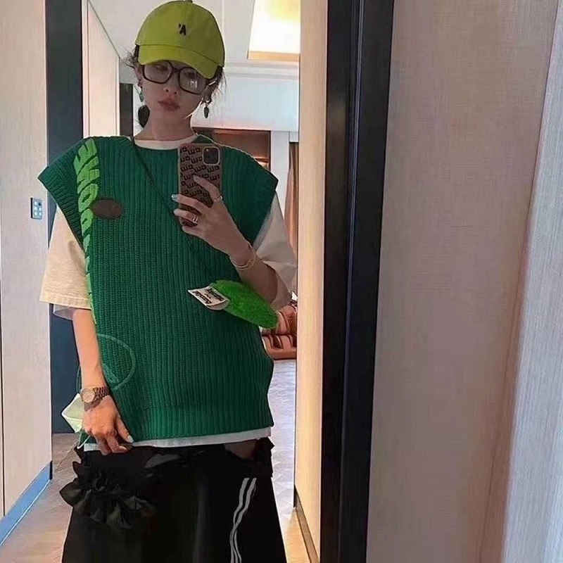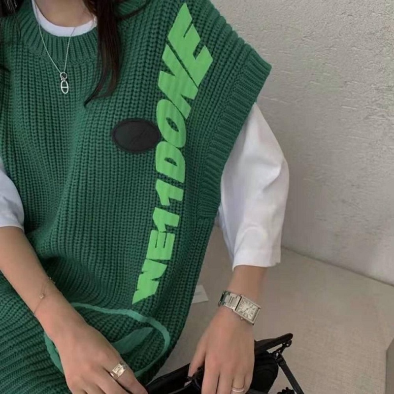 we11done welldone green alphabet print knitted vest vest wool vest new T-shirt women