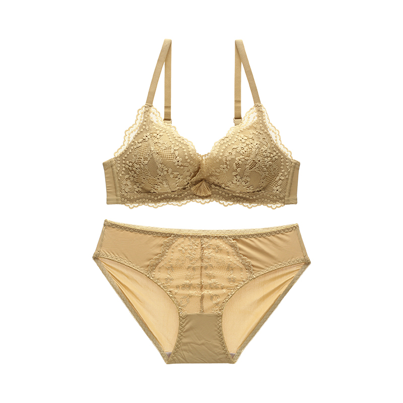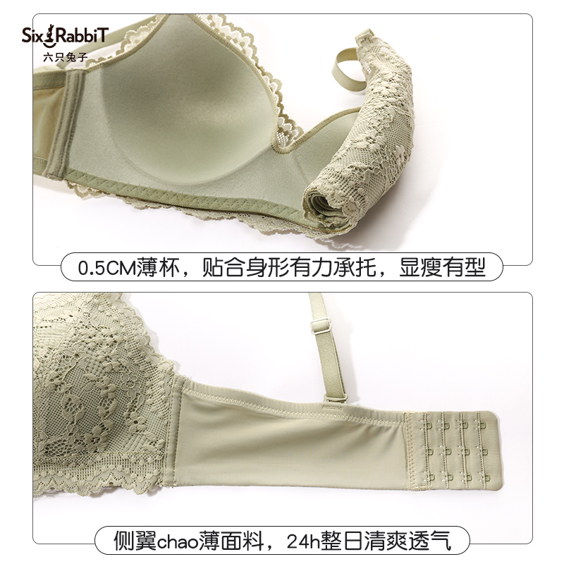 Six rabbits summer thin lace girl underwear Big chest small thin no rim side thin cup underwear set
