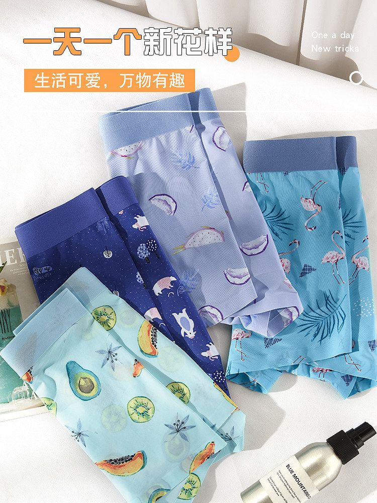 Ice Silk Briefs Men's Four Corner Pants Cartoon Original Printed Breathable Antibacterial Four Corner Pants Headless Thin and Summer Speed Dry