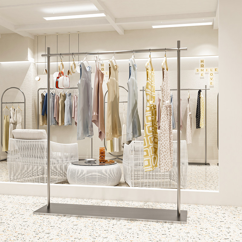 Simple Earth Style Middle Island Shelf Upscale Stainless Steel Wire Drawing Hanger Clothing Store Exclusive Display Rack Web Red Korean Version