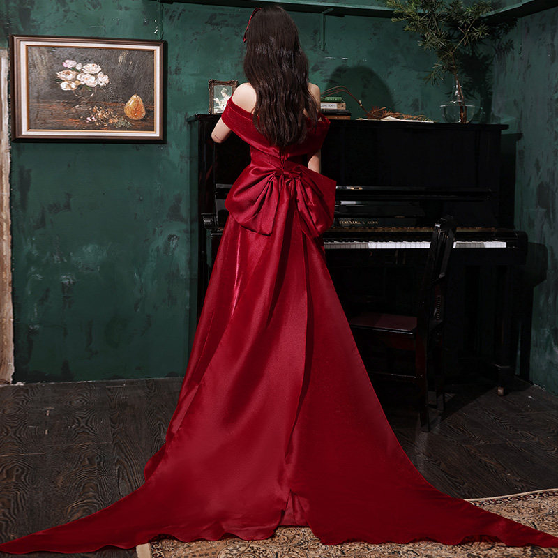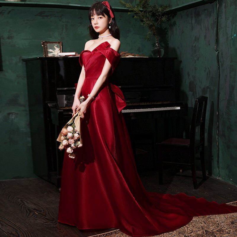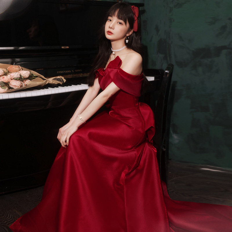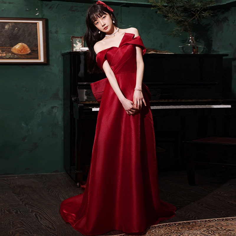 Toast dress bride 2022 new simple atmosphere one-shoulder small trailing engagement wedding host evening dress skirt
