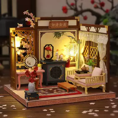 Meet Chinese dolls without chess(send tool glue LED lights) Meet Chinese dolls without chess dust cover Wooden base(send tool glue LED lights) Ink rain book forest Chinese style