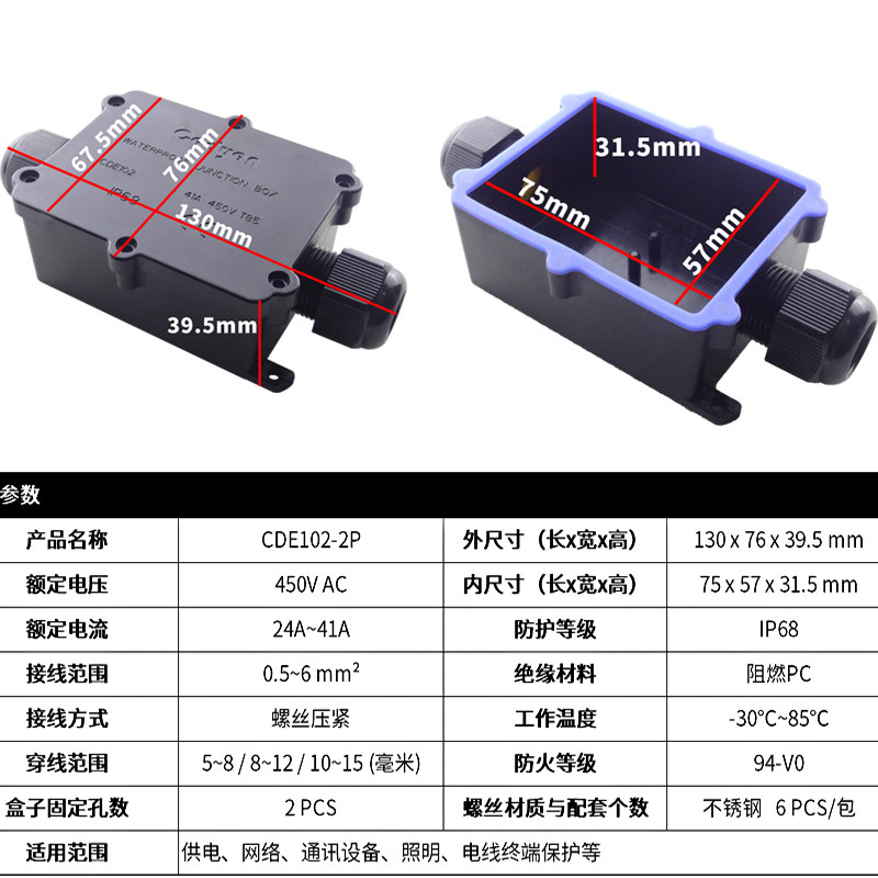Black CDE102-2P-08 10A Black CDE102-2P-12 10A Black CDE102-2P-0812 10A black
