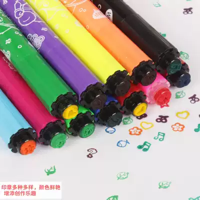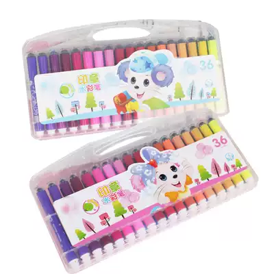 Seal watercolor pen Primary School color pen set children's kindergarten hand-painted 12 colors 18 color 24 color 36 color color color pen variety of patterns seal can wash Pen art painting brush safe and non-toxic