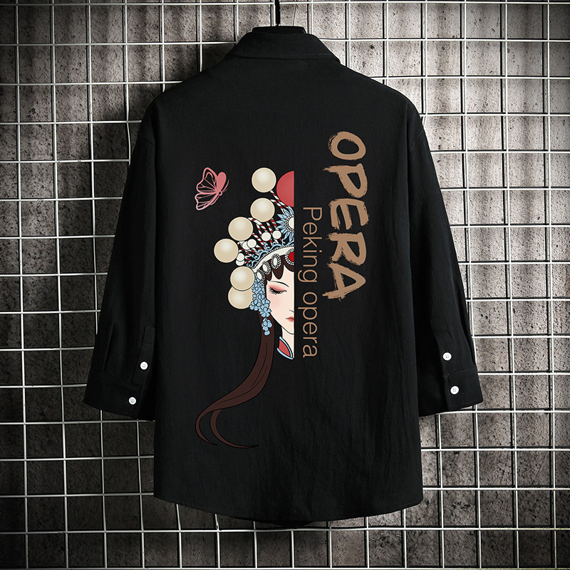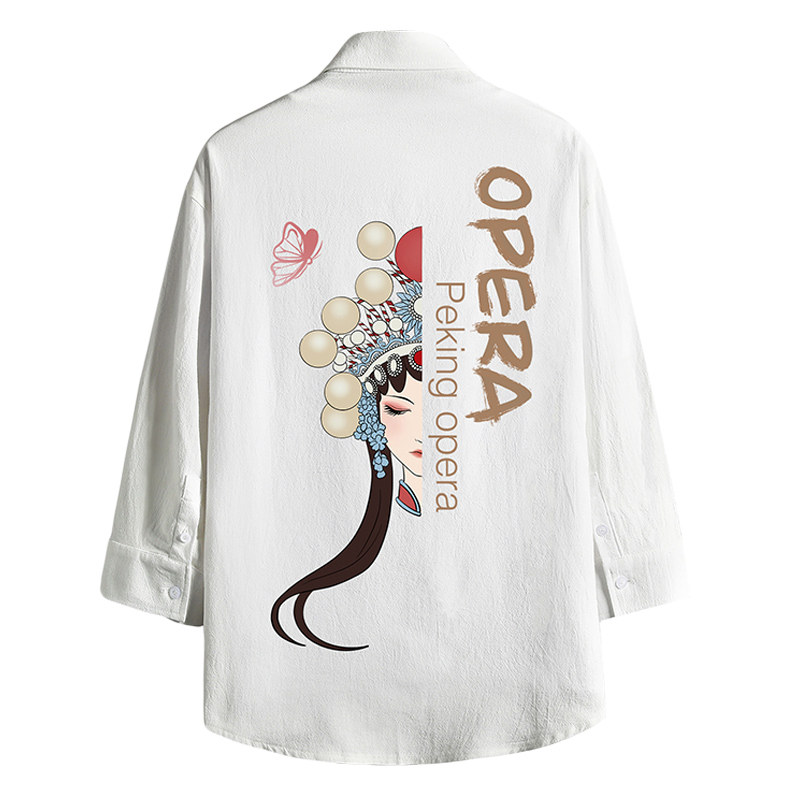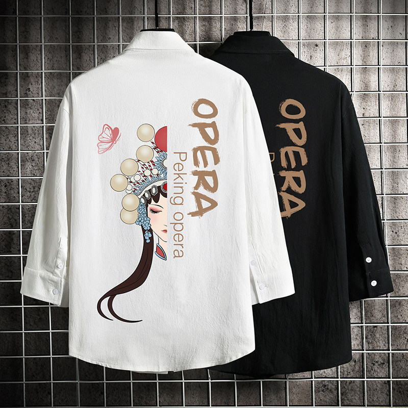 Summer day Department Back Peking Opera Printed Linen Shirt Man Short Sleeve Loose Large Size Casual 70% Sleeve Tide Jacket